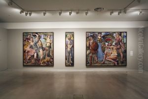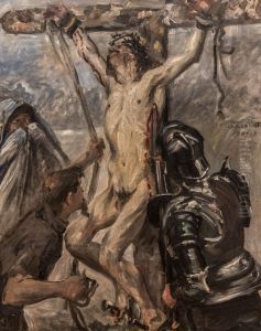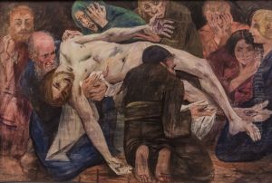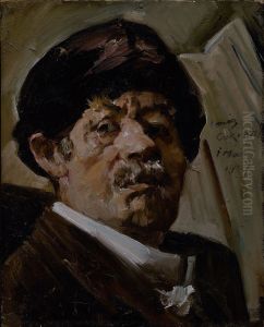 Selbstbildnis als Halbakt mit rotem Kopftuch