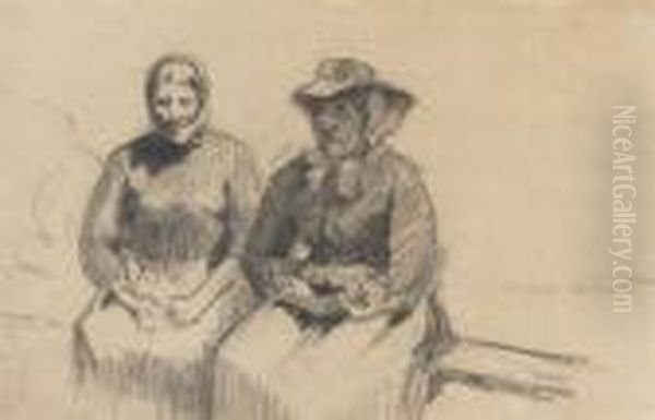 Zwei Sitzende Bauerinnen, Mit Den Handen Im Schoss