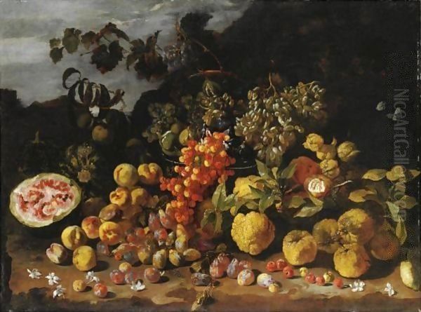 Natura Morta Di Frutta Con Prugne, Ciliegie, Anguria E Uva