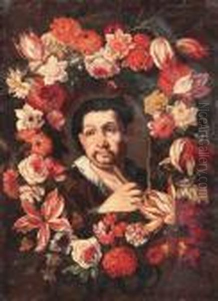 Ein Flotenspieler Umgeben Vor Einerblumengirlande