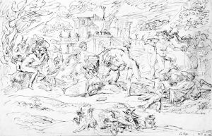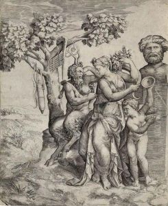 Pan als Gott des Naturlebens und als Meister der Musik mit seinen Begleitern