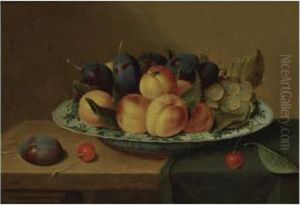Still Life With Plum, Cherries And Peach