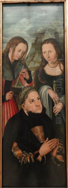 The Elector Frederic the Wise of Saxony (1463-1525) with the Saints Ursula (left) and Genevieve (right)