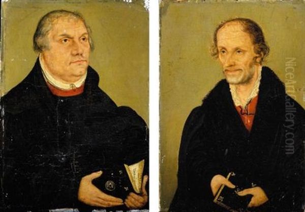 Portrait Of Martin Luther, Half Length, Holding A Prayer Book (+ Portrait Of Philip Melanchthon, Half Length, Holding A Prayer Book; Pair)
