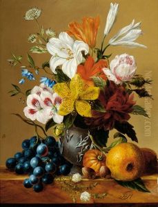 Vase De Fleurs Et Fruits D'automne Oil Painting by Lucas Schaefels