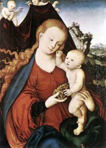 The Virgin And Child With Saint Catherine Holding A Bunch Of Grapes, A Winged Cherub Behind