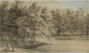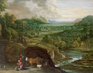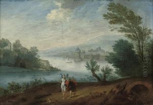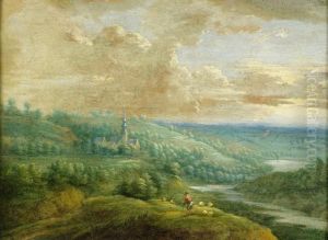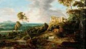 An Extensive Landscape With Figures On A Path To The Right, A Townbeyond