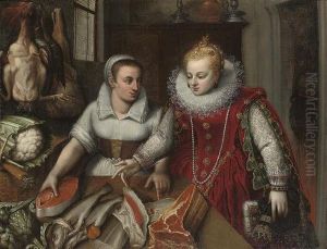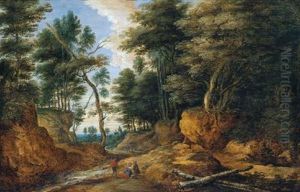 A Wooded Landscape With A Woman Carrying A Waterjug On A Path, Together With Other Women Carrying Baskets Nearby