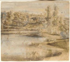 An Extensive Landscape With A Hawking Party Atthe Shores Of A Lake