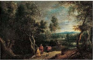 Flandrische Landschaft Mit Hoher Baumgruppe Und Figurenstaffage