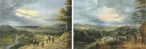 An Extensive Landscape With A Rainbow, A Shepherd And Shepherdess In The Foreground With Their Flock; And An Extensive River Landscape With Figures On A Country Path, A Church In The Distance (a Pair)