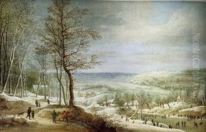 Paysage De Riviere En Flandres Avec Cinq Personnages Sur Une Route