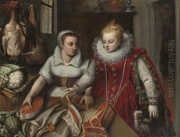 A Lady With Her Maid In A Kitchen