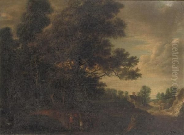 Travellers On A Path In A Forest Landscape