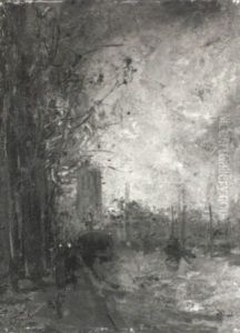 Figurenstaffierter Platz In Brussel Mit Strassenbahn