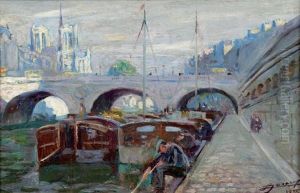 La Palais Ducal Et Le Campanile De Venise Vus De La Lagune Par Temps De Pluie Et Le Vieux Pont (2 Works)