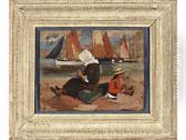 Mere Et Fillette Sur La Plage Huile S