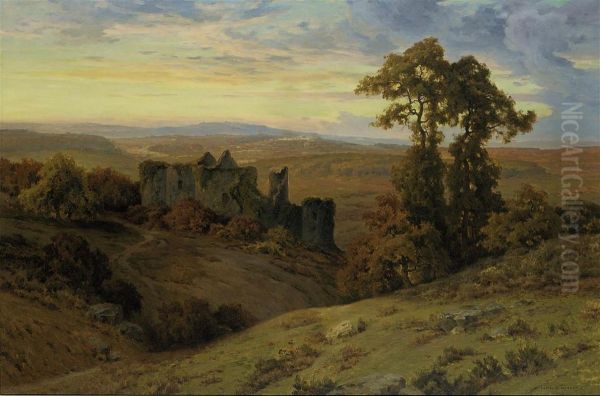 A Castle Ruin At Dusk
