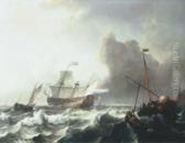 A Dutch Twenty-gun Frigate Dismasted In A Storm Off Enkhuizen