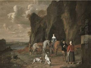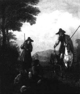 Bewaldete Fluslandschaft Mit Einer Jagdgesellschaft