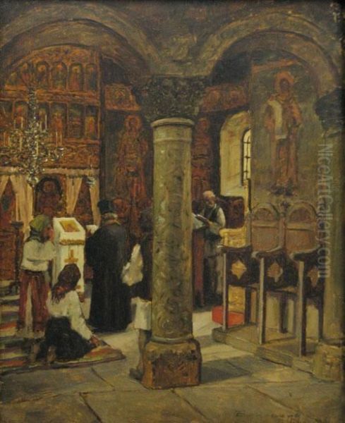 Interior De Biserica Oil Painting by Ludovic Bassarab