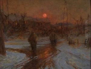 Landschaft Mit Gebauden, Steinbrucke Und Figurenstaffage