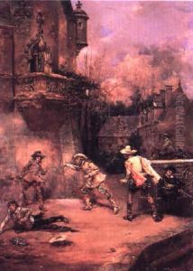 Musketier Mit Gezucktem Schwert In Der Stube