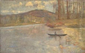 L'arno A Bellariva Oil Painting by Ludovico Tommasi