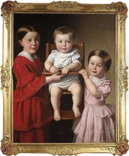 Triple Portrait Of The Siblings Josefa , Maria And Theresia Von Liechtenstein