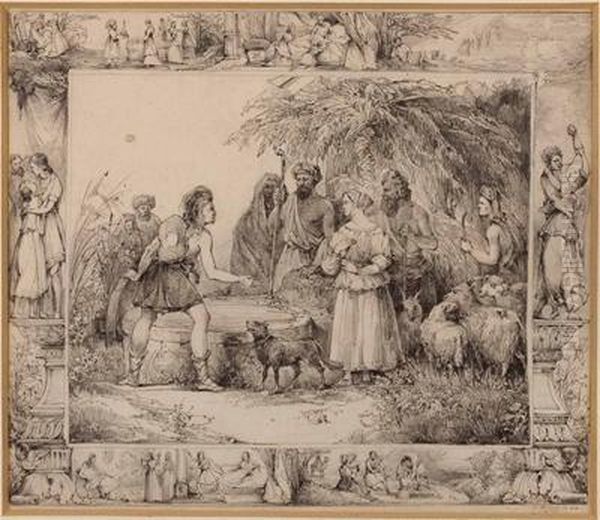 Hirten Am Brunnen, Umrandet Von Kleinen Figuralen Szenen