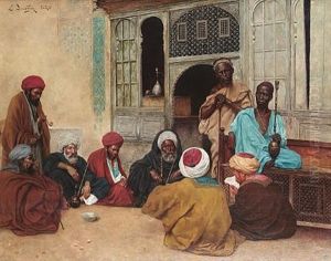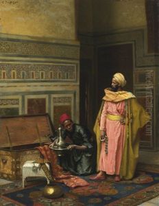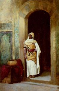 A Musician And A Guardsman In An Oriental Interior