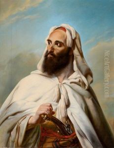 Homme Au Burnous Orange. Deux Tetes D'homme