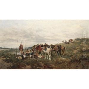 Reiter Bei Der Rast Vor Tiefer Landschaft