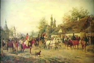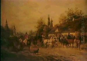 Pferdemarkt Vor Einer Ungarischen Stadt