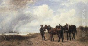 Bauern Mit Pferden Am Waldrand