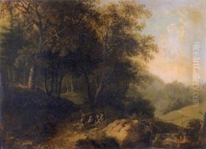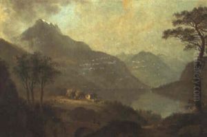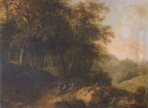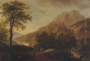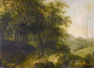 Baumbestandene Flusslandschaften Mit Personen- Und Tierstaffagen
