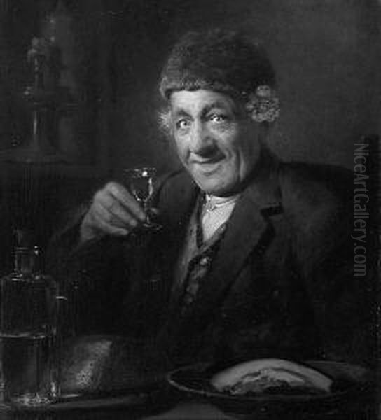 "trinkender Mit Pelzmutze". Sign. Ol Auf Lwd. 42,5 X 38 Cm. Rahmen