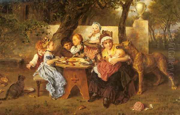 Bring the timeless beauty of Ludwig Knaus's The Birthday Party into your home with a handmade oil painting reproduction. Carefully recreated on canvas by skilled artists using traditional techniques, this piece captures the delicate brushwork, subtle light, and vibrant color of the original masterpiece. With museum-level quality and rich texture, it brings elegance and artistic depth to any space. Enjoy free shipping and make this masterpiece a part of your personal collection.