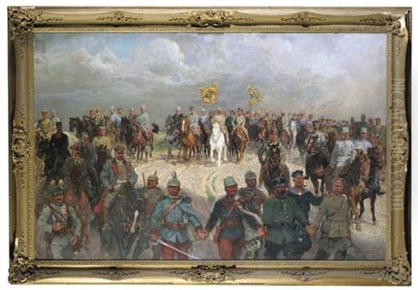 Bring the timeless beauty of Ludwig Koch's Franz Joseph I Austrian Emperor And Wilhelm Ii German Emperor With Officers (franz Joseph I., Kaiser Von Osterreich Und Wilhelm Ii., Deutscher Kaiser Mit Offizieren) into your home with a handmade oil painting reproduction. Carefully recreated on canvas by skilled artists using traditional techniques, this piece captures the delicate brushwork, subtle light, and vibrant color of the original masterpiece. With museum-level quality and rich texture, it brings elegance and artistic depth to any space. Enjoy free shipping and make this masterpiece a part of your personal collection.