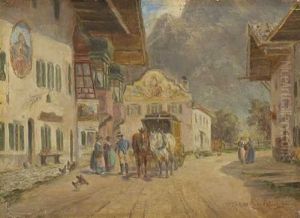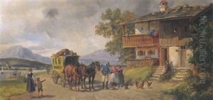Ankunft Der Postkutsche In Mittenwald, Oberbayern