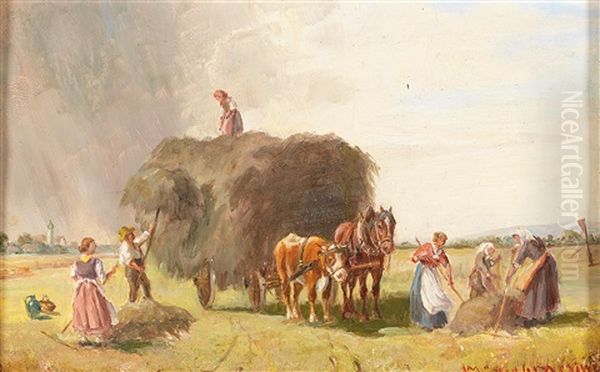 Haymaking Oil Painting by Ludwig Mueller-Cornelius
