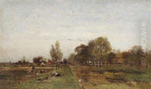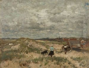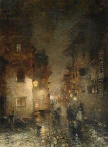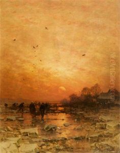 Winterlandschaft Mit Hausern Und Figuren Bei Abendlichem Tauwetter