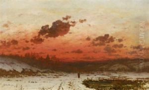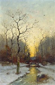 Winterlandschaft Mit Heimkehrendem Pferdefuhrwerk