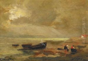 Bomschuiten And Bathing Hut On The Beach At Katwijk