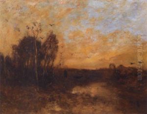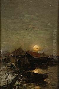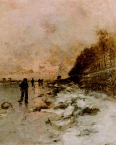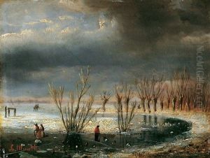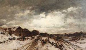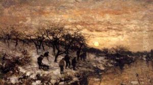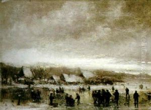 Vinterlandskap Med Figurer Och Byggnader, Skymning