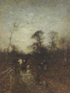 Heimkehrende Hollandische Bauersfrau Im Abendlicht Im Winter
