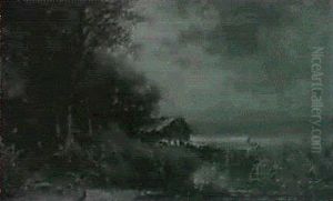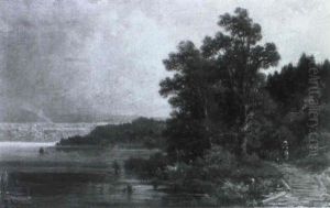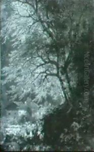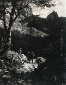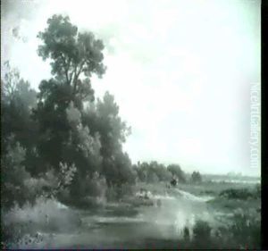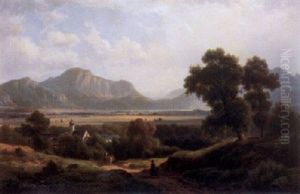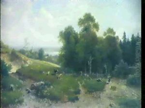 Moorlandschaft (dachauer Moos) Mit Einem Jager Bei Der Niederwildjagd Links Und Hirten Mit Vieh Rechts