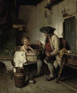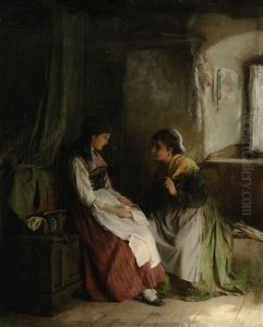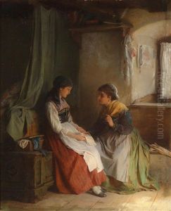 Bring the timeless beauty of Ludwig Vollmar's In Einer Schwarzwalder Bauernstube Sitzt Sich Ein Junges Paar Gegenuber into your home with a handmade oil painting reproduction. Carefully recreated on canvas by skilled artists using traditional techniques, this piece captures the delicate brushwork, subtle light, and vibrant color of the original masterpiece. With museum-level quality and rich texture, it brings elegance and artistic depth to any space. Enjoy free shipping and make this masterpiece a part of your personal collection.