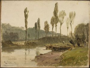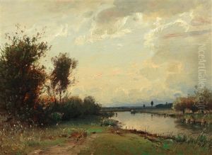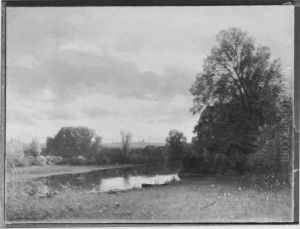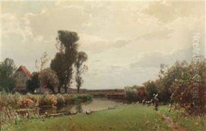 Sommerlandschaft Mit Bachschleuse Und Baum