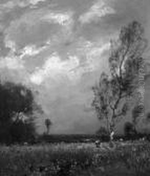 "moorlandschaft Mit Birke". Rucks. Nachlass-stempel. Ol Auf Karton. 29 X 25 Cm. Rahmen